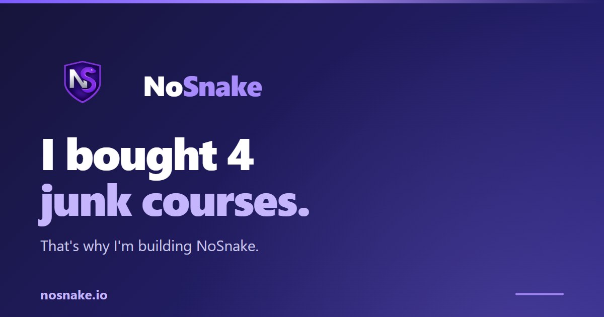 I bought 4 junk courses. That's why I'm building NoSnake.